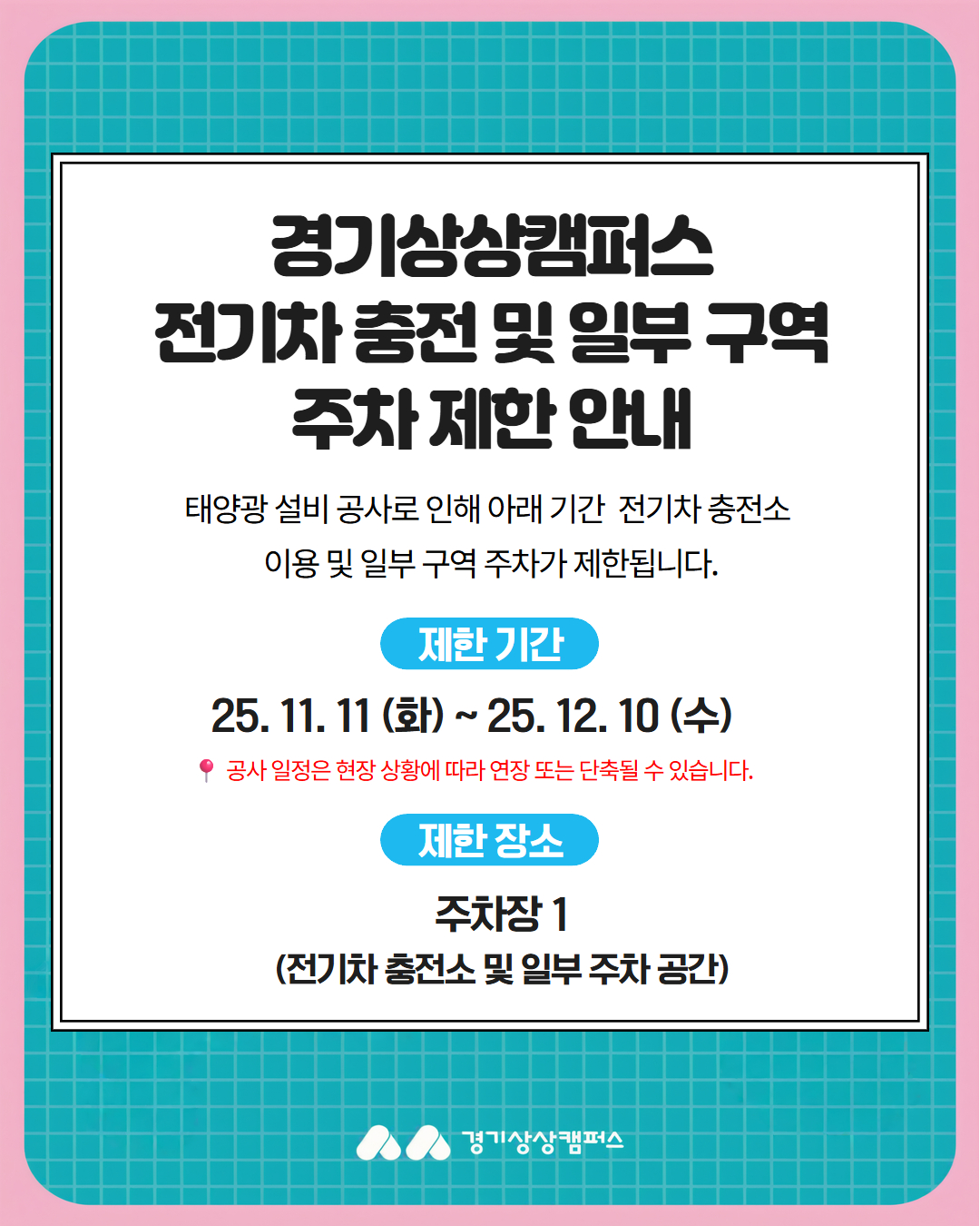 경기상상캠퍼스전기차 충전 및 일부 주차 제한 안내