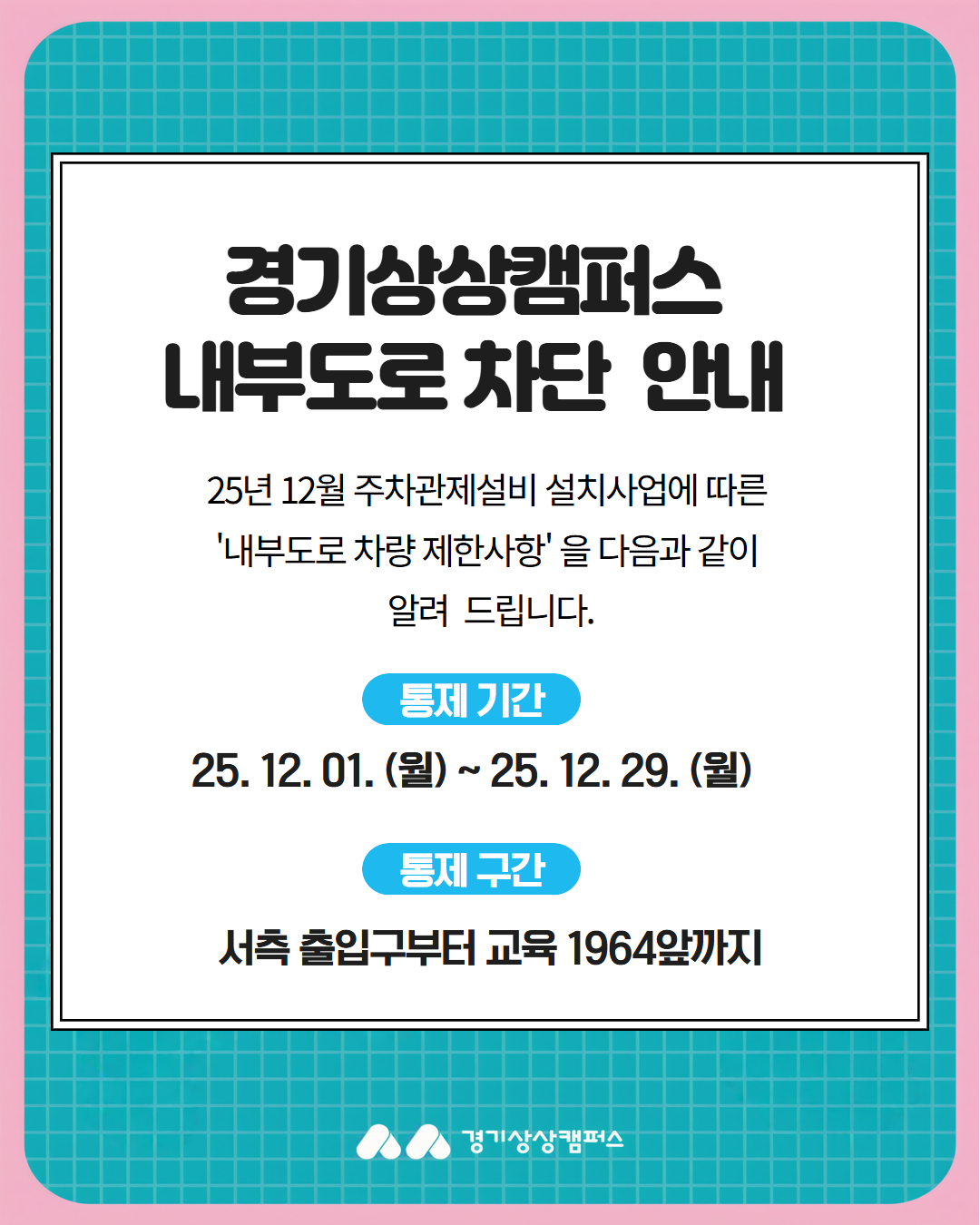 경기상상캠퍼스 내부도로 차단 안내