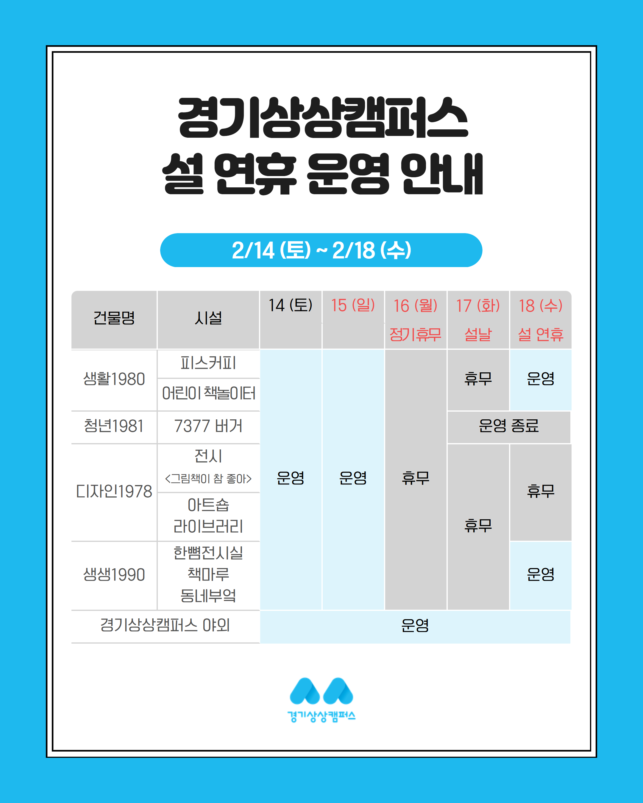 2026년 설 연휴 경기상상캠퍼스 운영 안내드립니다.