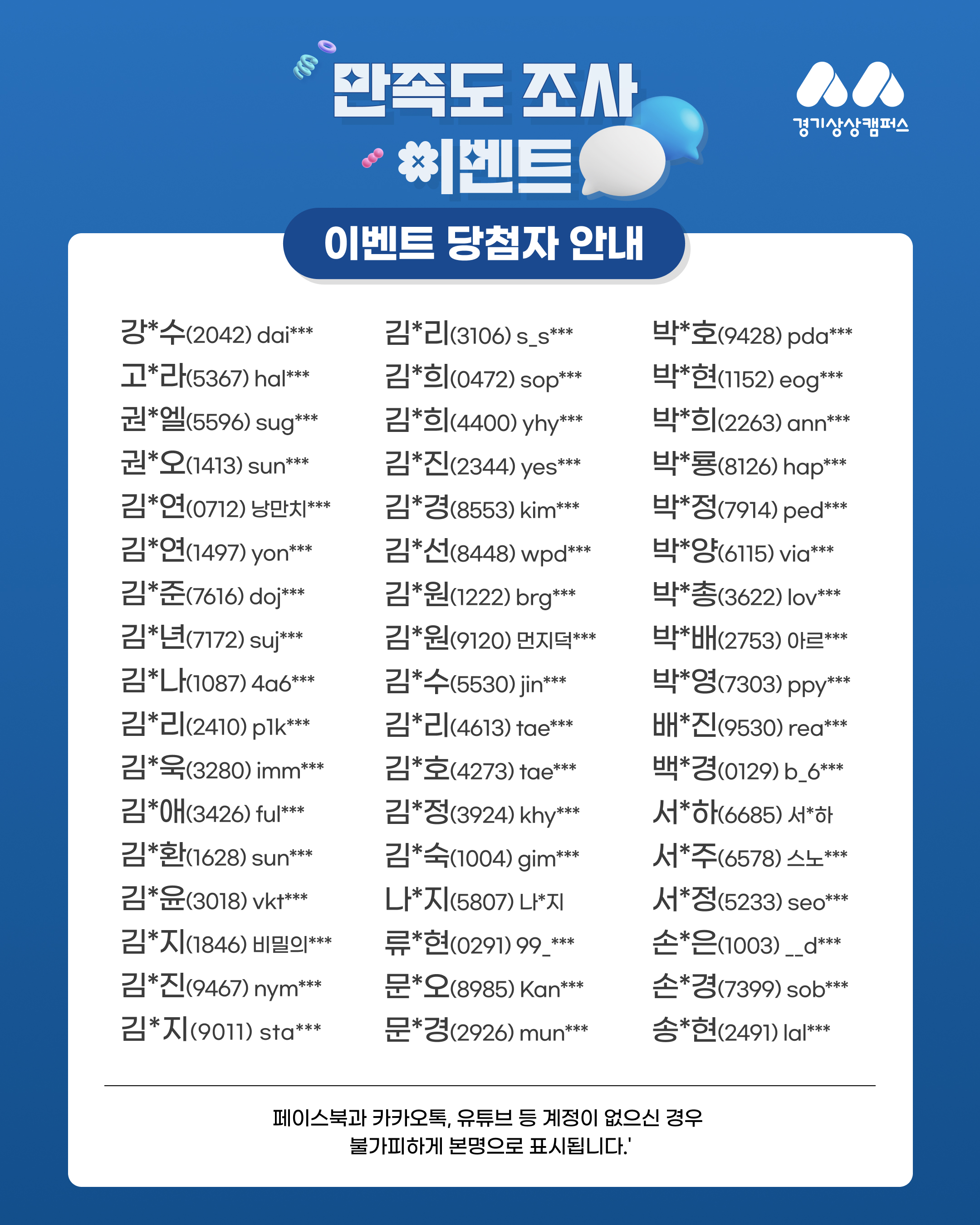 경기상상캠퍼스 만족도 조사 이벤트 당첨자 발표