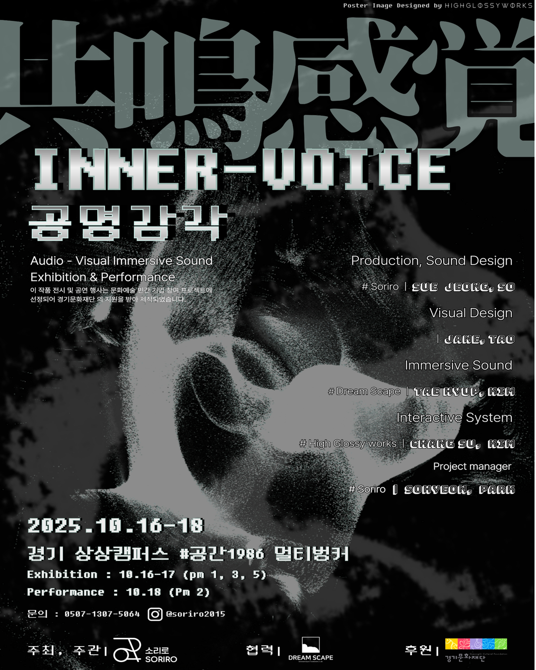 전시 퍼포먼스 《INNER VOICE – 공명감각》은 소리를 새로운 시각으로 바라보는 몰입형 오디오·비주얼 전시입니다.