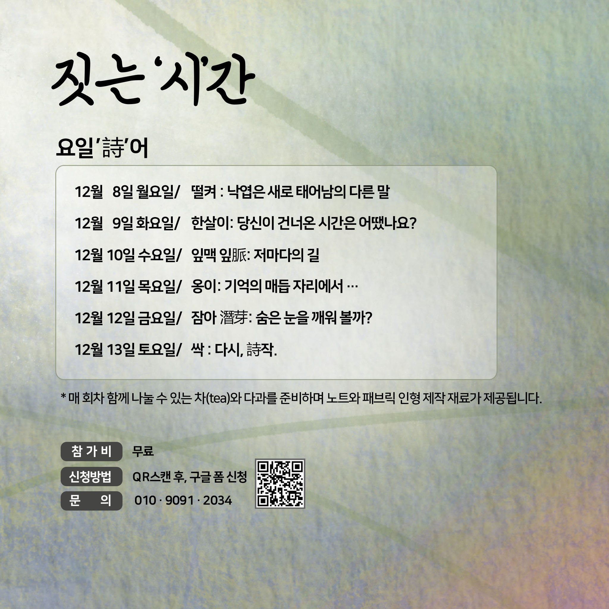 -신청링크에서 회차별 ‘詩’어를 확인 후, 나에게 필요한 시간을 선택해 참여해 주세요.