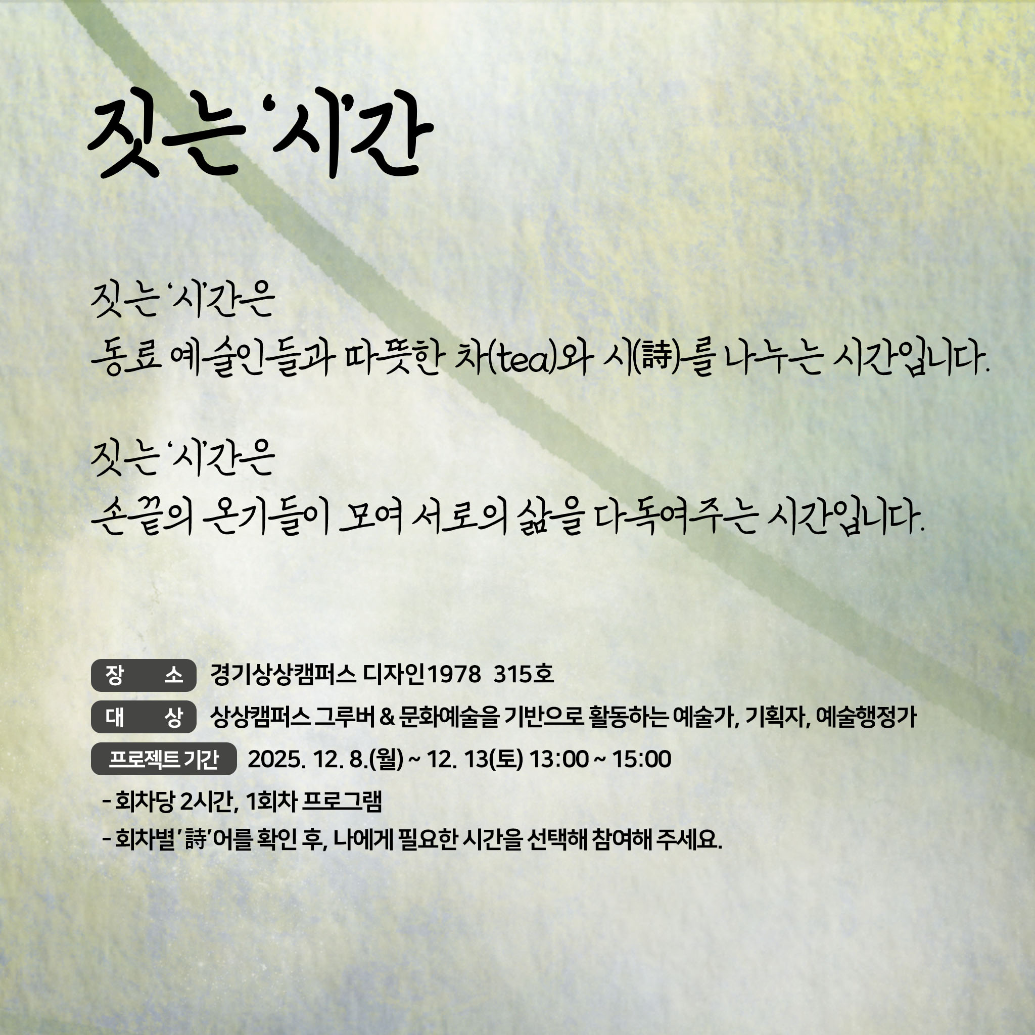 동료 예술인들과 따뜻한 차(tea)와 시(詩)를 나누는 시간입니다.