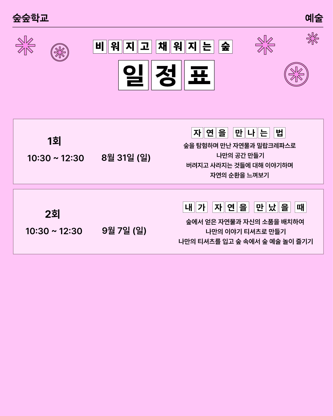 8. 31.~9. 7(일) 2회차 연속 프로그램입니다.