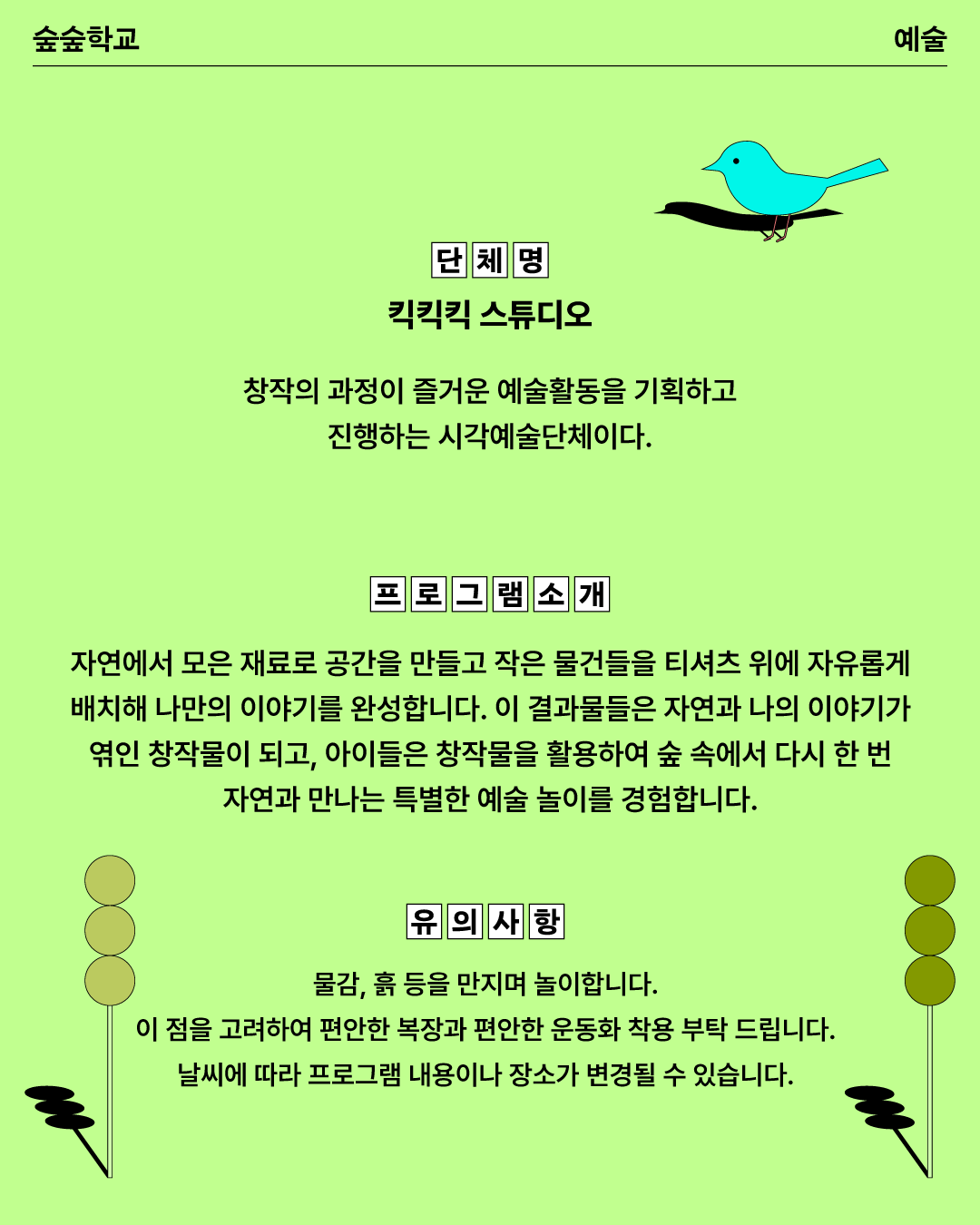 🌸6월~11월 ‘숲’과 ‘예술’ 기반의 다양한 예술교육이 진행됩니다.