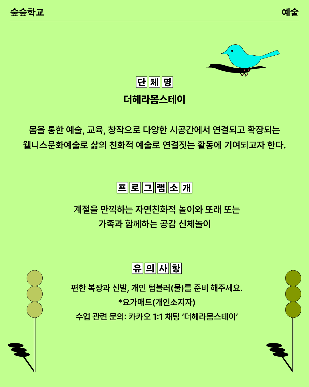 🌸6월~11월 ‘숲’과 ‘예술’ 기반의 다양한 예술교육이 진행됩니다.