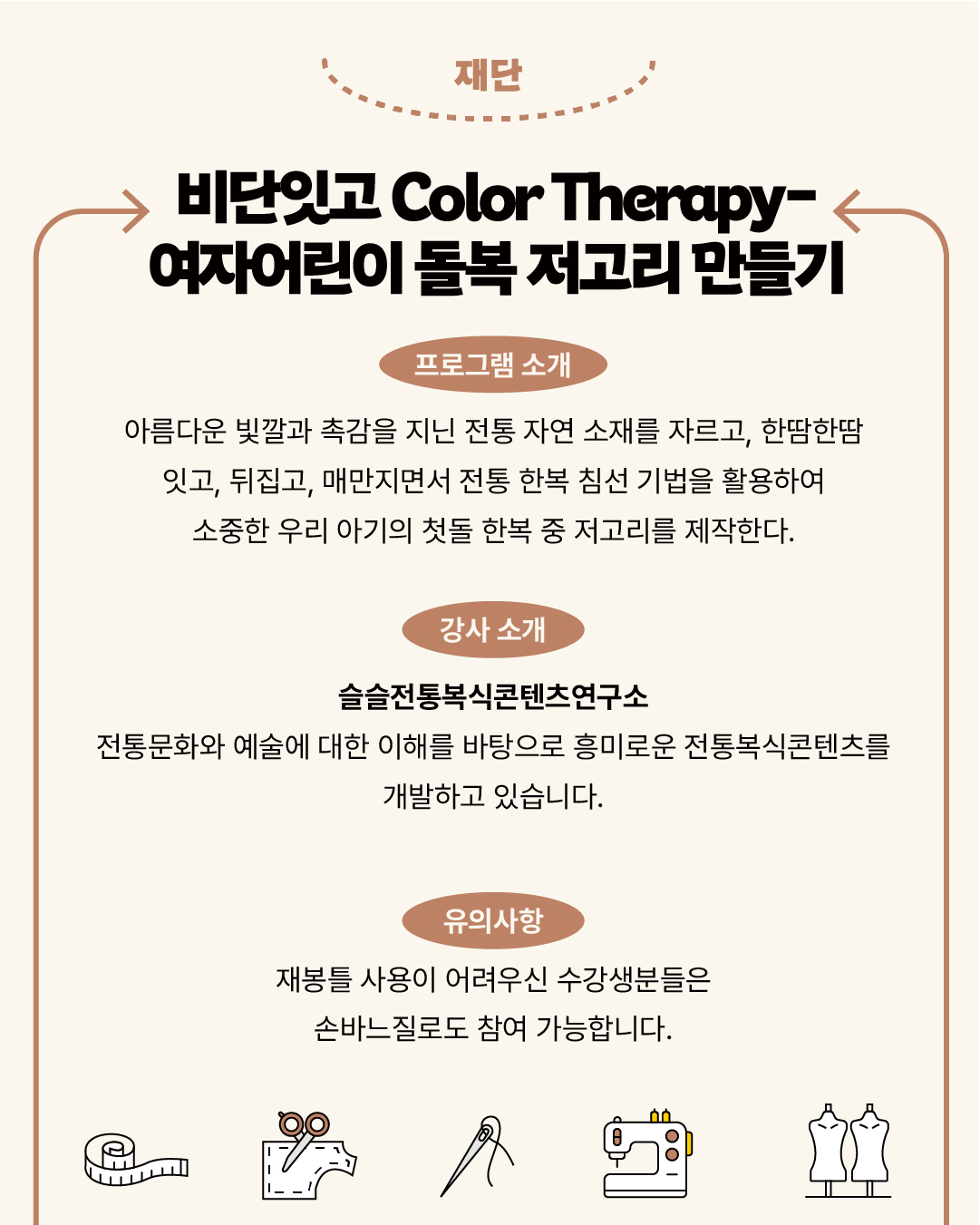 [생활창작공방] 비단 잇고 Color Therapy - 여자어린이 돌복 저고리 만들기COLLECTIONS