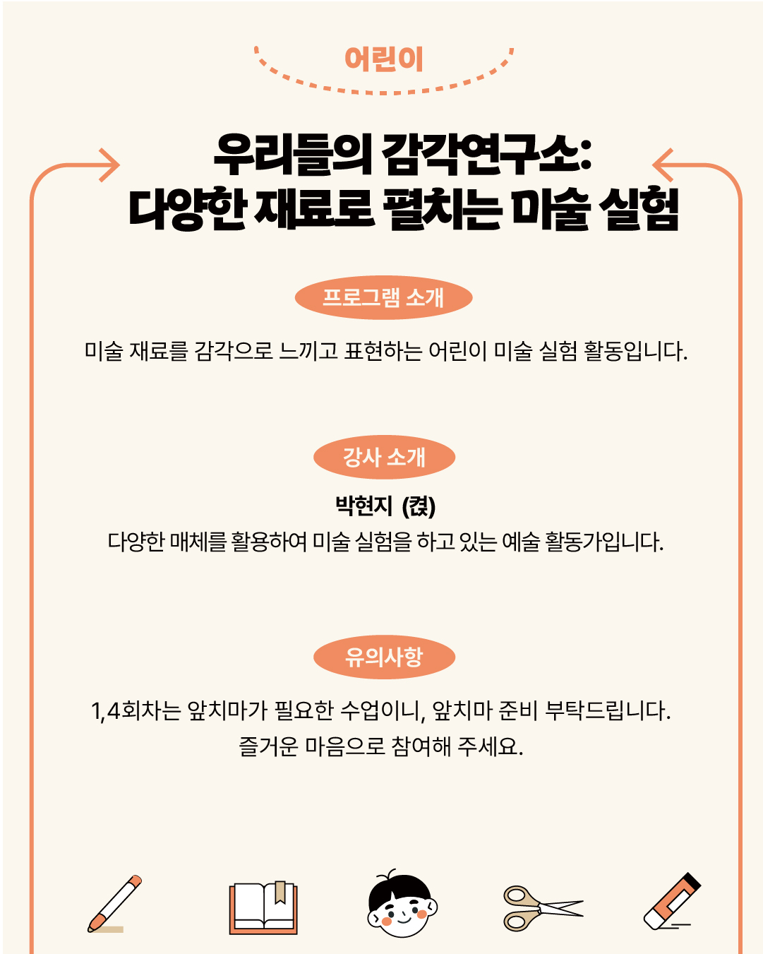 [생활창작공방] 우리들의 감각 연구소: 다양한 재료로 펼치는 미술 실험