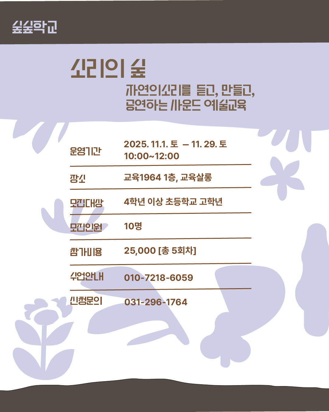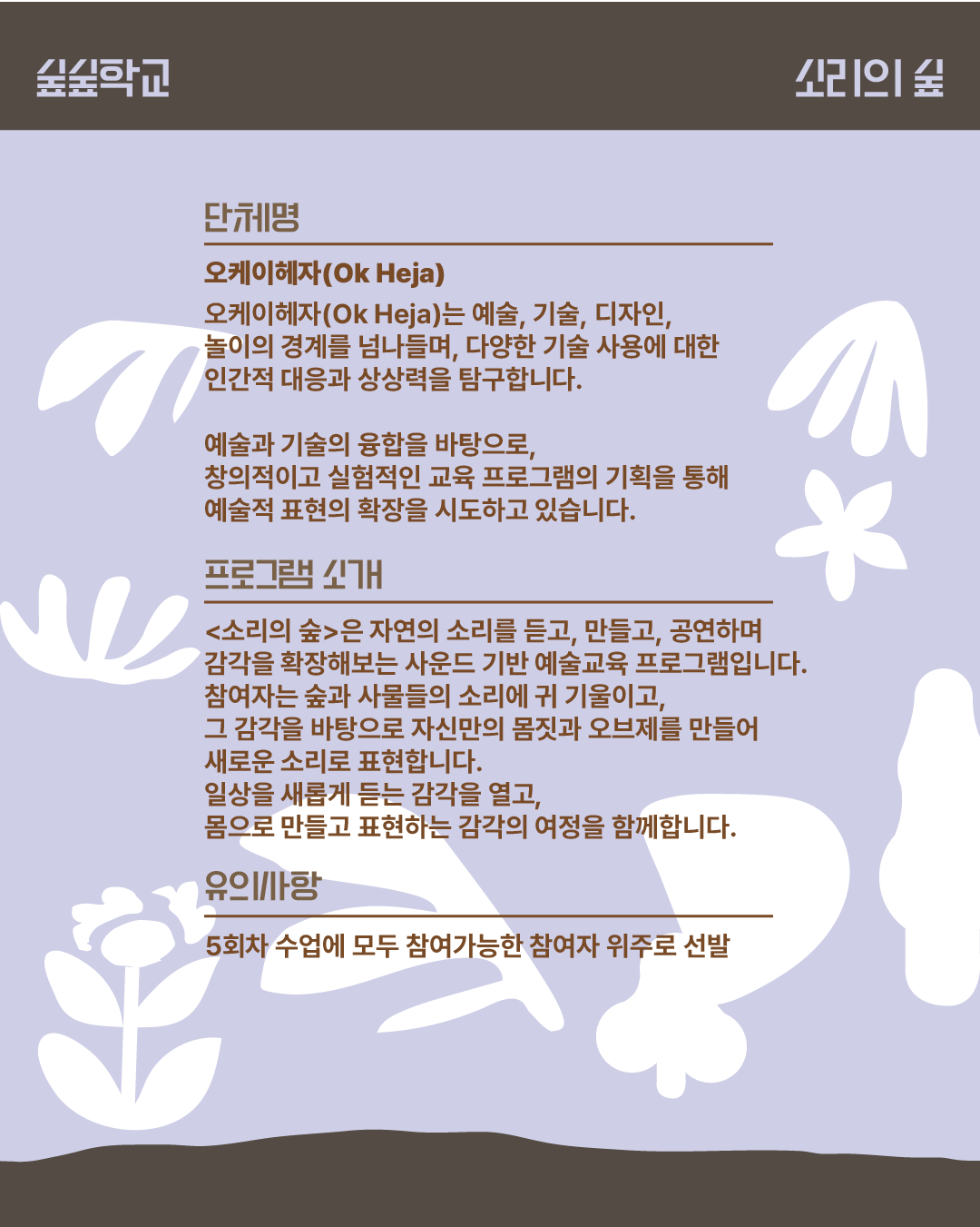 [숲숲학교] 소리의 숲: 자연의 소리를 듣고, 만들고, 공연하는 사운드 예술교육COLLECTIONS