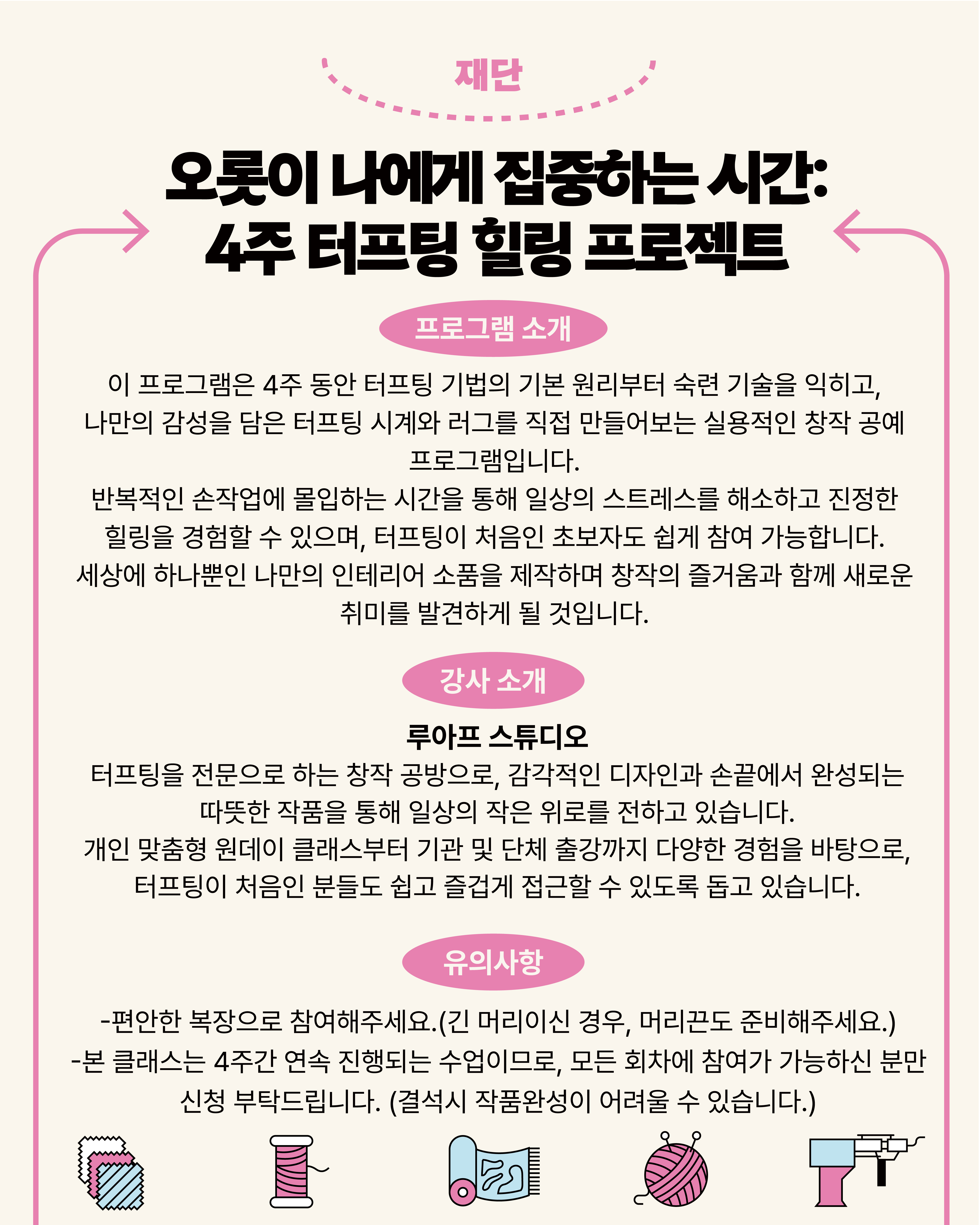 [생활창작공방] 오롯이 나에게 집중하는 시간: 4주 터프팅 힐링 프로젝트