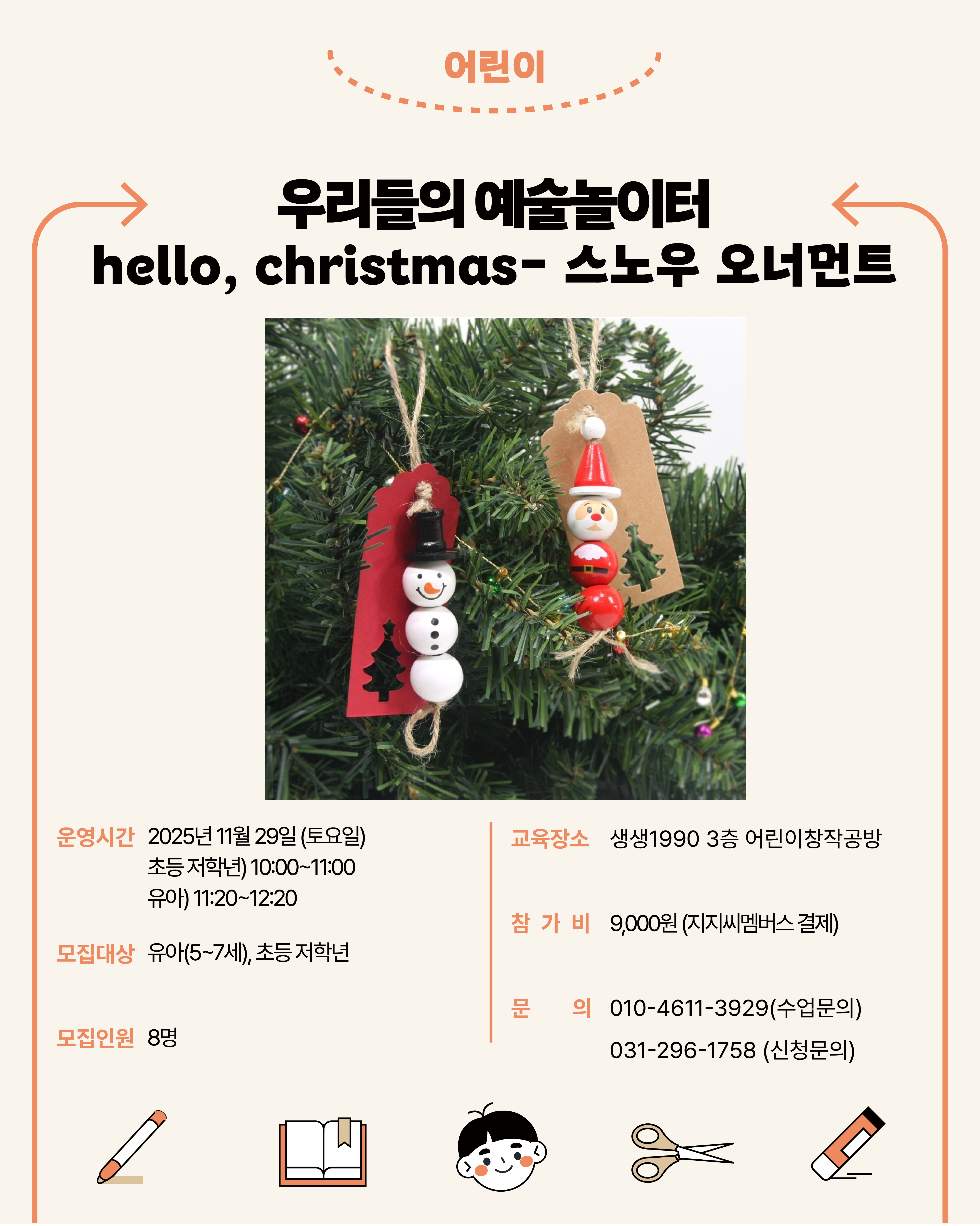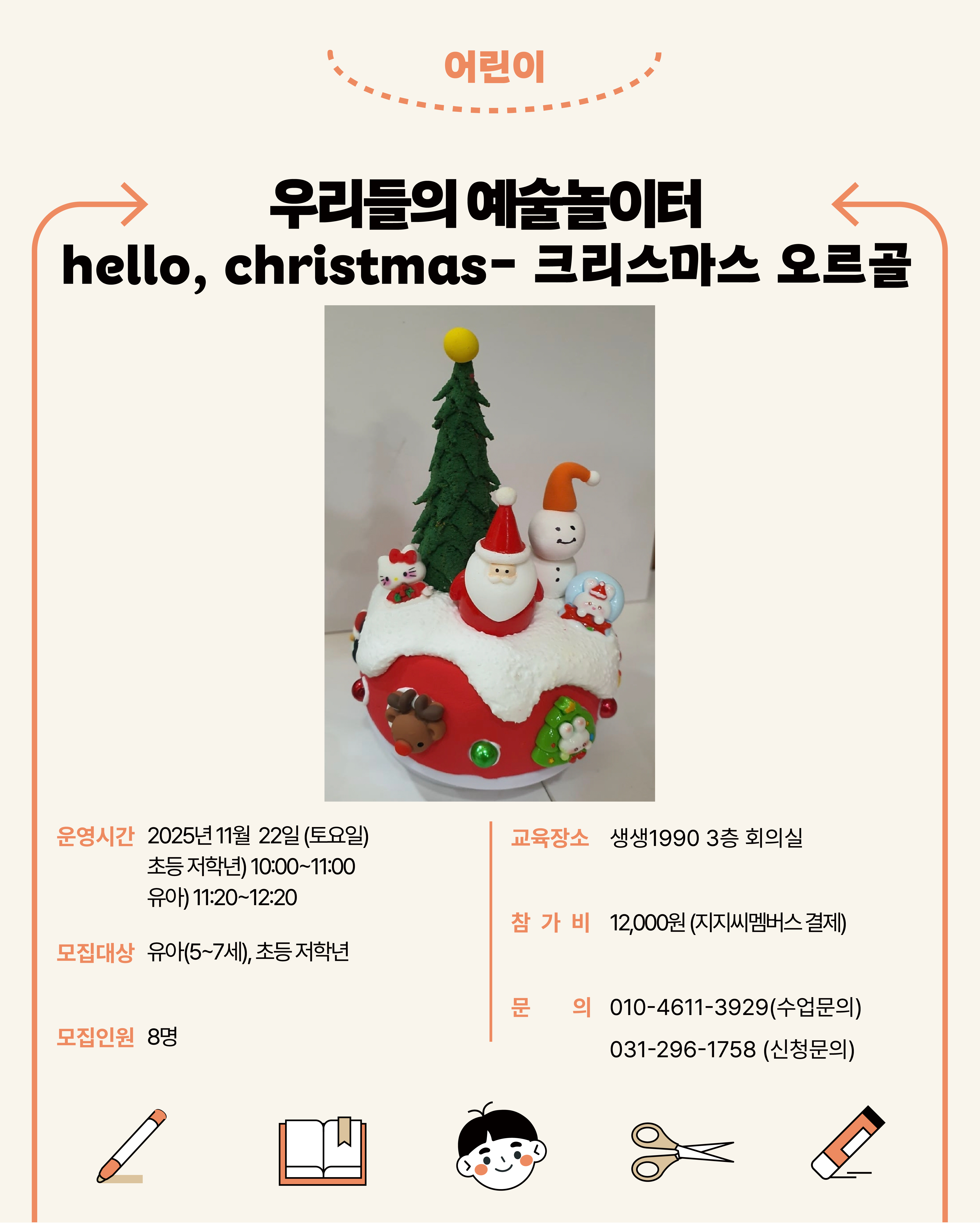 초등 저학년)10:00~11:00 / 유아: 11:20~12:20대 상 유아(5~7세), 초등 저학년 장 소 경기상상캠퍼스 생생1990 생활창작공방 회의실, 어린이창작공방
