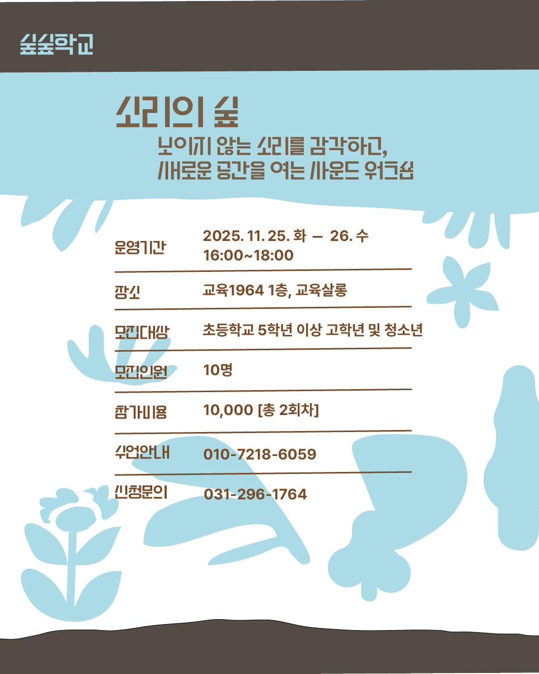 [숲숲학교] 소리의 숲: 보이지 않는 소리를 감각하고, 새로운 공간을 여는 사운드 워크숍COLLECTIONS
