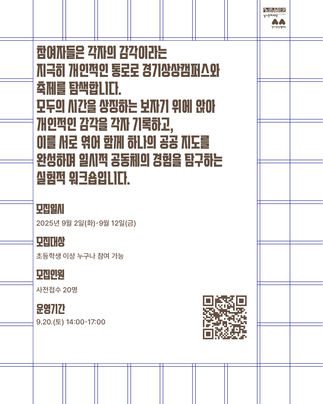 프로그램 신청은 상단의 신청 버튼 혹은 신청 QR로 신청 가능합니다.