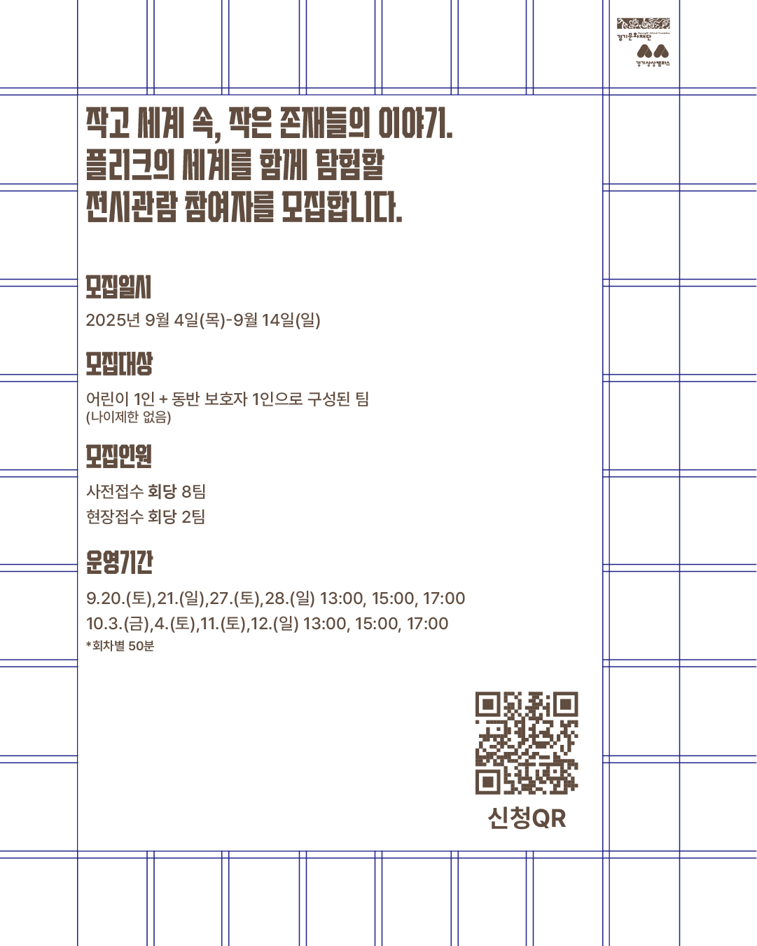 9월 20,21,27,28일 10월 3,4,11,12일 13:00, 15:00, 17:00대 상 어린이 1인+ 동반 보호자 1인으로 구성된 팀(나이제한 없음) 장 소 청년 1981 105호